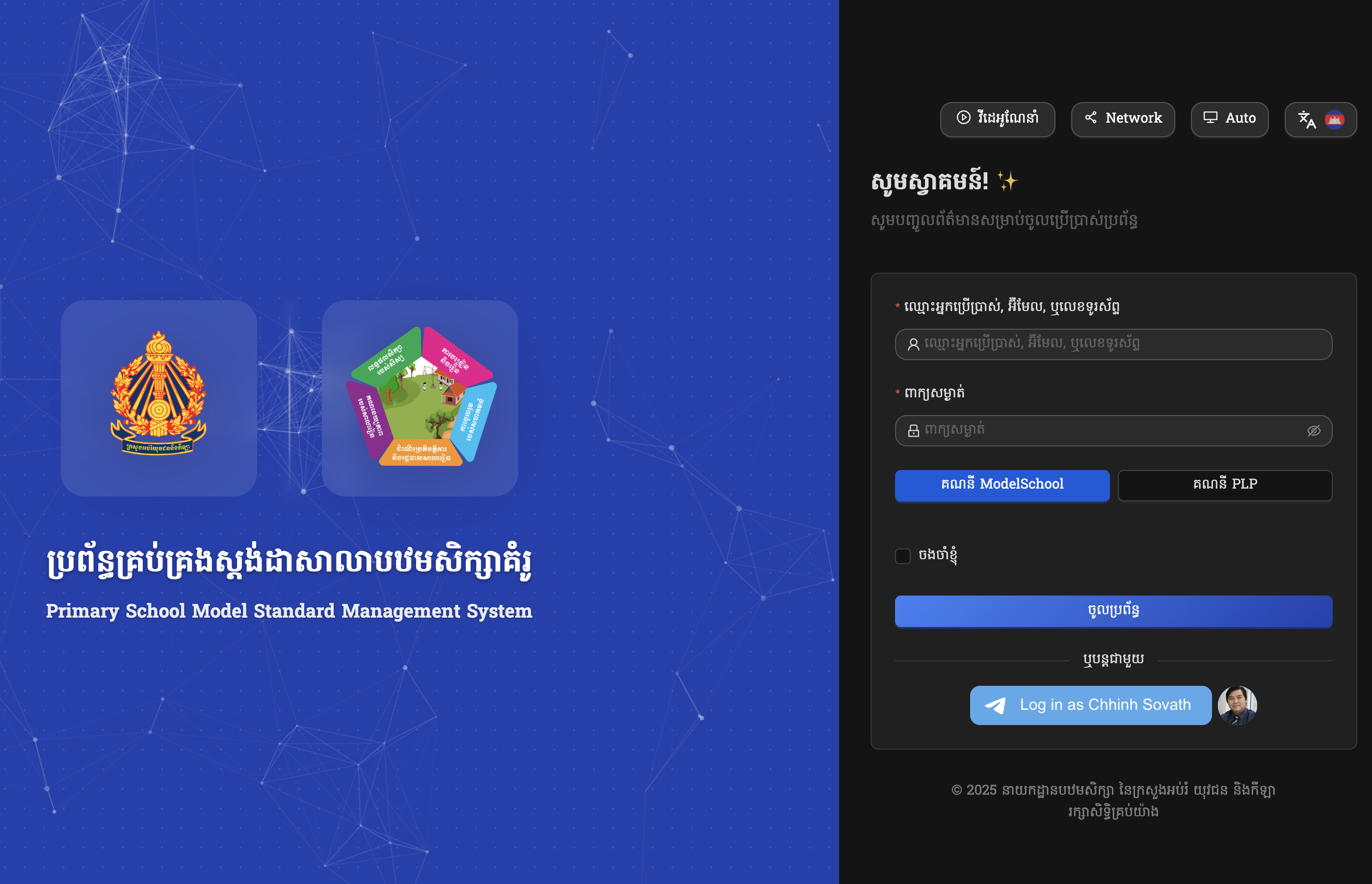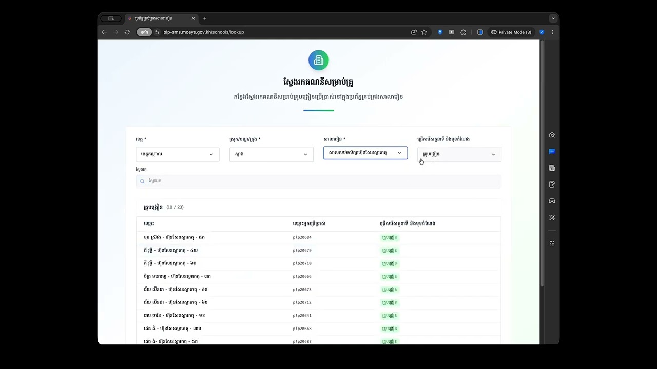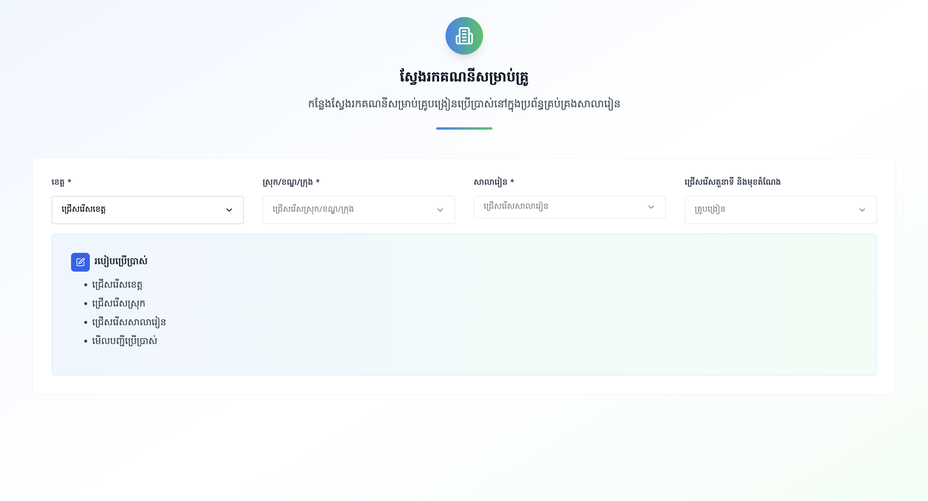 ស្វែងរកឈ្មោះអ្នកប្រើ និងលេខសម្ងាត់របស់សាលារៀន សម្រាប់ប្រព័ន្ធគ្រប់គ្រងសមិទ្ធកម្ម